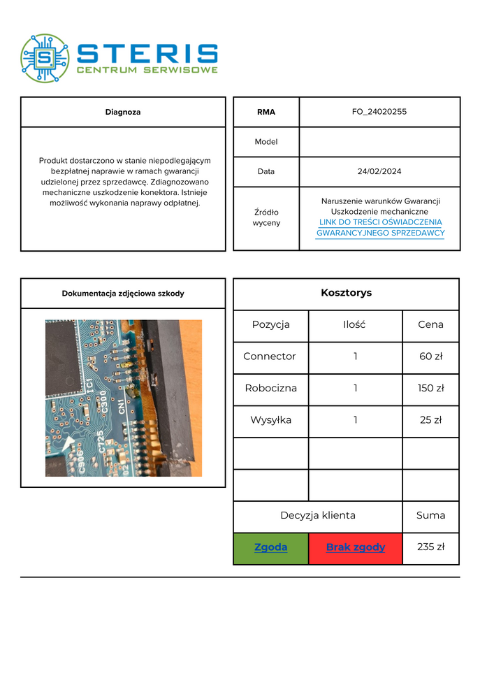 W Steris od 2020 roku realizujemy naprawy elektroniki użytkowej w ramach autoryzacji uzyskanej od dystrybutora marek Lionelo, Overmax oraz Zeegma. Obsługa realizowana jest na zasadach High Volume Low Margin. Pomimo obsługi dużego wolumenu oraz zróżnicowania obsługiwanych produktów, każda naprawa traktowana jest indywidualnie oraz z odpowiednią dbałością o stan produktu oraz doświadczenie klienta.